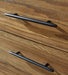 - Metal bar pulls with blackened iron finish