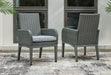 Add a distinguished touch of gray to your outdoor living space with this arm chair. It's made with resin wicker over an aluminum frame with a wood-look finish for a relaxed feel that provides seasons of enjoyment. Rest assured, the thick seat cushion is wrapped in Nuvella® high-performance fabric that’s fade-resistant, stain-resistant and a breeze to clean.