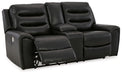 With its decidedly contemporary styling, this power reclining loveseat with console has a sleek sensibility that seamlessly elevates your living room aesthetic. Explore endless possibilities for comfort with its one-touch power control, zero-gravity reclining and adjustable headrests. A triple-tier back and chic black upholstery round out this simply stunning piece.