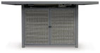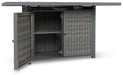 - Double cabinet doors conceal gas propane tank (not included) and 2 shelves