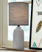 Add a casual modern look to your home with this table lamp. Its textured body is accented with a raised diamond pattern of clean lines and grooves, while brass-tone fittings provide a glamorous touch. Paired with a charcoal drum shade, this ceramic lamp is striking in transitional to contemporary environments.