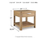 The classic yet contemporary good looks of this occasional table package are hard to deny. Softly shaped posts with a light oak finish and wire-brushed wood grain texture lend an organic appeal to your soothing space. Roomy drawers cater to additional storage needs while keeping clutter at bay.